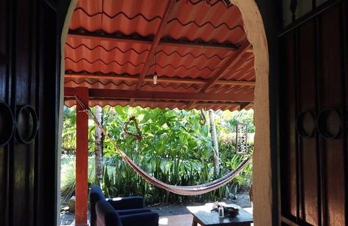 located in puntarenas, province, southern costa rica, on the playa zancudo peninsula The area is laid back and non touristy. The Grove is 300ft. from the beach and just off the main road. The large veranda overlooks the surrounding gardens with ample hammocks & seating. Includes a large fully equipped kitchen. Full private bath & bedroom sleeping 5. A perfect place for families or those looking for a tranquil retreat.