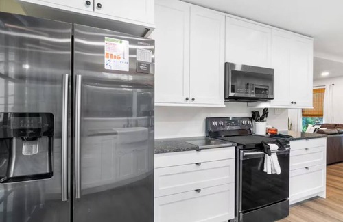this tropical sanctuary is cozy, modern, and well-appointed The private home sits on a secluded half-acre with peaceful mature trees, nestled in a quiet neighborhood.