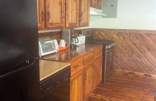 Take it easy at this unique and tranquil getaway will take your breath away. A true fisherman's cabin with wood throughout located on its own private lake. This property DOES SHARE 25 acres with another cabin but the fisherman's cabin is very private. Fish off your own deck with ceiling fans and a gas firepit. For an extra charge, you can have use of the kayaks on the property for fishing and recreation. Large living room also has large very comfortable couch which can sleep 2 (not pullout). If you afraid of bugs or wildlife, this is not the property for you. We do allow pets, but there will be a pet fee added..