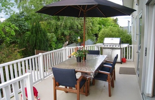 Ideally located 3 minutes walk from the Lake front and Two Mile Bay boat ramp. This well appointed house is sunny and spacious with great indoor outdoor flow. Nice quiet green street with school field and playground next door. Enjoy a BBQ on the elevated deck or relax in the comfort of indoors. Large 4K Wide screen TV with Netflix, CD/DVD/Blu-Ray player and huge DVD collection for entertainment. Plenty of off street parking for Boat or car (no garage parking) and well fenced to keep kids in if necessary. Mains pressure hot water ensures an enjoyable shower up stairs and down. Move the table and chairs inside or out according to the weather. Effective wood fire to warm the place in the winter and each room also has portable electric heater if needed too. Swim in the lake, river or soothing local hot pools.