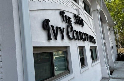 guests can park in the off-street parking spots, and will have access to the pool in the middle of the courtyard