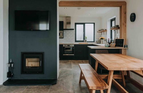 located over the entire lower floor of the property, there is a well-equipped fully integrated kitchen with breakfast bar and a dining area with views over the beach The living area with corner sofa, boasts a log burner for cosy Winter nights in. Open up the patio doors and enjoy the sea breeze.