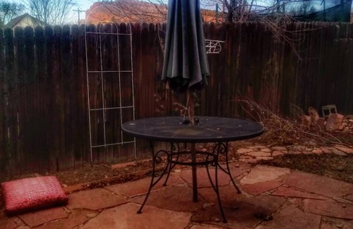 patio + small fenced garden area with lovely western views