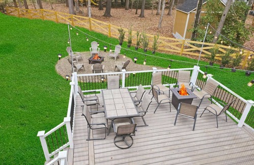 Indulge in a luxurious 5-star experience at this exquisite 1/2-acre, 3000 sq ft residence in North Charlotte. Treat yourself to leisurely moments around the fire-pit on the expansive 400 sq ft deck, where you can revel in relaxation or engage in lively games of ping pong and cards on the 8-seat poker table. Enjoy restful nights on premium king-sized beds with luxurious 100% cotton sheets. With six TVs available for your entertainment, watch together or privately in your own bedroom.
