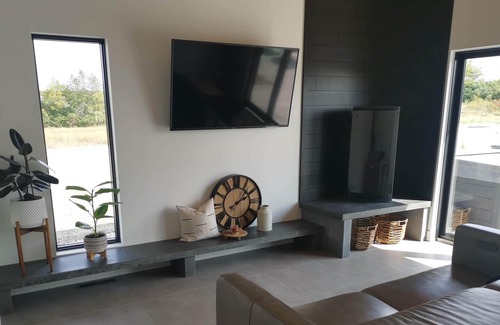Tranquil, modern, and spacious home to host a large group during the US Senior Open at SentryWorld golf course. In-ground, heated pool with autocover, 7 person hot tub, 2 outdoor gas firepits, outdoor TV, indoor gas & wood burning stoves. 15 minutes from the golf course in a quiet neighborhood..