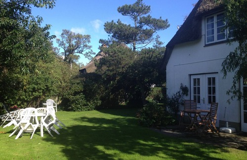 Our house shell is a picturesque Frisian house with thatched roof right in the historic village of Nieblum on the island Föhr, in a central location very quiet. First mentioned in the village chronicle in 1795, it has been run by the Fink family since 1958 as a guest house. In this house we offer you three cosily furnished non-smoking apartments. Original old, beautifully painted frieze doors and beautiful Föhr watercolors on the walls underline the personal touch.