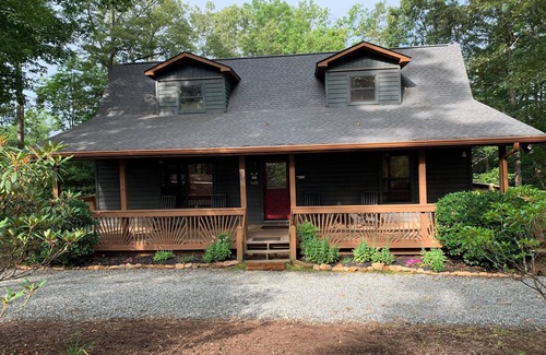 Relax with the whole family in this peaceful, pet friendly, mountain cabin surrounded by the Nantahala National Forest. You can drive any vehicle to navigate the winding roads and access our flat gravel driveway. You'll enjoy the peace and quiet as you relax out on the wrap around deck and take in the beautiful peekaboo mountain views. Grill out on the back deck and watch a portion of the sun set. Sit around the newly upgraded fire pit and make s'mores with the kids. Our house features three levels of warm and inviting amenities to make your next visit to the wilderness, everything you expected and more. Enjoy our two large screen TVs connected to the Dish Network! Shoot pool, play foosball, or video games with the Wii U! Fiber optics and Wireless Internet is available for checking emails and light streaming.