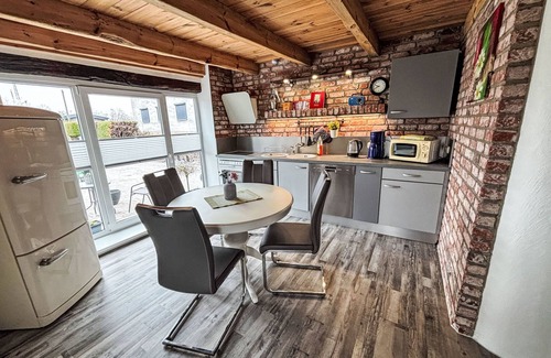 "paula", 3-room house 58 m2 on 2 levels Modern furnishings: living room with satellite TV, CD-player and hi-fi system. Exit to the terrace. Kitchen (4 hot plates, oven, dishwasher, toaster, kettle, microwave, freezer, electric coffee machine) with dining table and wood-burning stove. Shower/WC. Top floor: (steep stair), 1 open room with sloping ceilings, ceiling height 10 - 190 cm, without wardrobe with 1 double bed. 1 open room with sloping ceilings, ceiling height 10 - 190 cm, without wardrobe with 2 beds. Electric heating. Terrace, patio. Terrace furniture, deck chairs (2). Facilities: logs (extra). E-charging station. Please note: non-smoking house. Smoke alarm. Bookings accepted for holiday purposes only.
