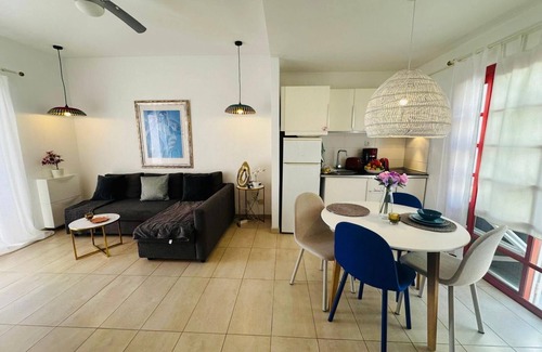 The cottage "Bungalow Aloe Dunas 2" in Maspalomas is the perfect accommodation for teleworkers who want to enjoy a relaxing environment. This 45 m² property consists of a living room with a sofa bed for 2 people, a fully-equipped kitchen, 1 bedroom, and 1 bathroom and can therefore accommodate 4 people. Additional amenities include high-speed Wi-Fi (suitable for video calls) with a dedicated workspace for home office, cable and satellite TV, a fan as well as a washing machine. A baby cot and a high chair are also available.
