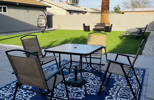Welcome to this 4-bed Modern Desert Oasis home (sleeps up to 8 people). Soak up the sun in the beautiful yard with private hot tub, pool, turf, BBQ grill, lounge chairs and more. The gorgeous kitchen boasts new appliances and a large quartz island for cooking or hosting. There are 2 full bathrooms, a dedicated workspace for those WFH days, a washer and dryer and free driveway parking for your convenience. This home is only 15 mins to the Strip and 10 mins to the Airport. This place has it all.