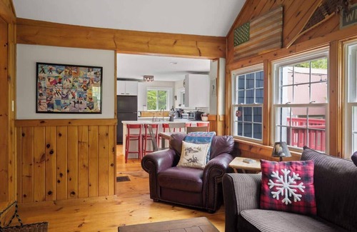 centrally located only 7 miles from both stratton sun bowl base lodge & mount snow! take in your surrounding all seasons from the deck Inside you are greeted with a cozy cabin feel. 3 bedrooms and 1.5 bathrooms perfect for 8 guests. get into a vermont state of mind and book this getaway today!