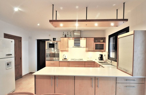 on the main floor you'll enjoy a bright entrance hall, kitchen with dining area fitted kitchen and access to the furnished terrace for al fresco dining A split level Living room with sofa and TV, from which you can also access the pool. dining area