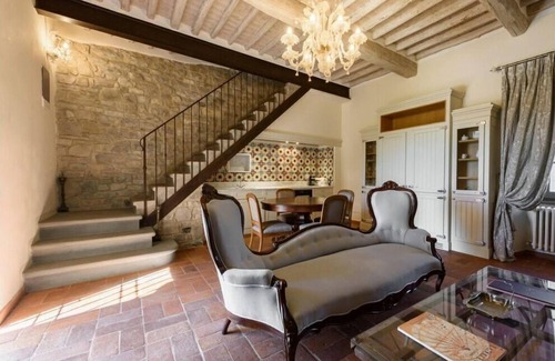 Stunning villa with pool and spa, located in a panoramic position among the Chianti hills, halfway between Florence and Siena.