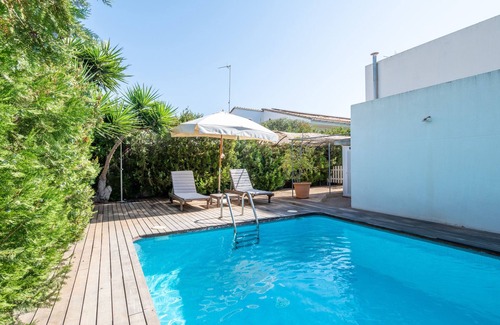 The villa Es Tancat, which is situated in Sa Ràpita, is 100 m from the sea. The 374 m² property consists of a living room, a fully-equipped kitchen, 3 bedrooms and 2 bathrooms and can therefore accommodate 6 people. Additional amenities include high-speed Wi-Fi (suitable for video calls) with a dedicated workspace for home office, air conditioning in the kitchen and dining room, fans in the bedrooms, a TV as well as a washing machine. On top of that, a table tennis table is also provided for your enjoyment. 2 baby cots and 2 high chairs are also available.