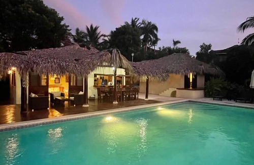 Located in Las Terrenas, this villa is a dream. With 5 bedrooms including 2 queen beds, 2 twin beds, and 1 king bed, it's perfect for a group of guests. The property also offers a large infinity swimming pool, WiFi and a washing machine for your convenience. You'll love the terrific views on the Atlantic Ocean from your wooden deck and nice tropical and Caribbean ambiance that this typical tiki style villa provides. Whether you're lounging by the pool, preparing your barbecue under the stars or exploring the nearby attractions, this vacation rental promises a memorable stay. Feel free to reach out to us during your stay - we're happy to suggest local spots to check out..