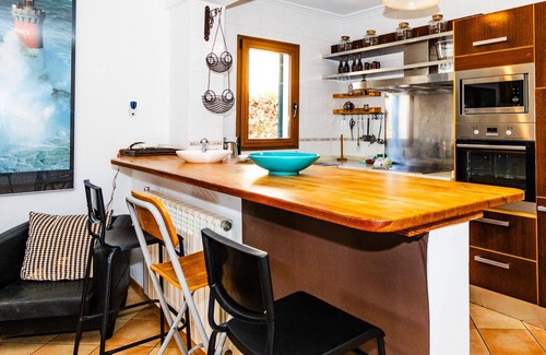villa ewa is equipped with everything necessary for a comfortable stay: wifi, fans, central oil heating, built-in wardrobes in each bedroom, a kitchen with everything needed to prepare your best dishes, including a ceramic hob, fridge, dishwasher, microwave, complete kitchenware and much more, and the laundry room with washing machine, dryer, iron and ironing board
