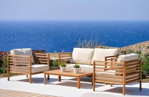 Villa Galen is stunning, contemporary and striking whilst still embracing the wonderful, traditional chalk-white curvy and honey-coloured stone Mykonian elements seen all around Mykonos. A wonderfully ambient seaside theme flows through the villa, and fabulous first-class furnishings and accessories make your heart sing. The neutral colours are offset by occasional brilliant flashes of colour or texture. It is imaginative and extremely well thought through to ensure you relax and feel pampered and appreciated. The interior and exterior are equally stunning. be prepared not to want to leave!