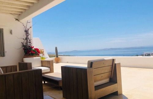 Villa Vanilla is a brand new construction with fine building quality and modern chic architectural design. The villa offers amazing and unobstructed sea views to Delos, Renia, Tinos and Syros islands almost from every spot of the structure. The altitude and orientation of the villa provide mesmerizing and colorful sunset views while maximizing the duration of the natural sunlight.