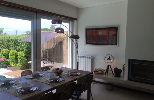 House with 2 bedrooms, 2 bathrooms, garden and swimming pool. Home with modern architecture just 20 minutes walk and 5 minutes drive from the beach of "Aldeia do Meco", with parking. Located very close to the village where you can enjoy and delight in regional and excellent quality food in good restaurants and bars. Holds great proximity to some sports such as windsurfing schools (Lagoa de Albufeira School - 5 minutes), surf and bodyboard (school of Sesimbra - 10 minutes). For those who enjoy golf there is a field in Quinta do Peru about 30 minutes. Nearby is Sesimbra, Cape Espichel, Arrábida, Setúbal, Azeitão. Take the A2 from Lisbon, take the exit for Sesimbra, then turn right at the roundabout to the Aldeia do Meco, the house is located 30 minutes from Lisbon. Beaches that delight your visitors with sea and landscape to lose sight of, participate in the best sunset parties in the bars of these wonderful beaches. TV and Internet..