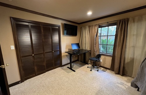 Quiet 4 bedroom/3 bath home on the American River bluff above the San Juan Rapids. Breathtaking river views from the backyard, all 3 upstairs bedrooms, family rm, kitchen & both dining rooms. With private lawn, deck, bbq and expansive gardens. Laundry and well-equipped chef's kitchen, flatscreen TVs with Roku in living rm and all 4 bedrooms. 20 min to downtown Sac, Sac airport and 1.5 hrs to Lake Tahoe. Walking distance from Bannister Park’s river access and scenic bike trails.