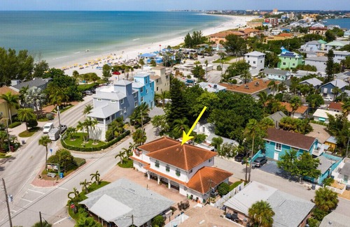 this unit offers secure wifi, a barbecue grill for outside cooking, a fully stocked kitchen and a king size bed Walk one minute to the white sandy beach and a very popular restaurant where the locals eat & drink while watching the most amazing sunsets anywhere! There's also a boardwalk down the street that spans 6 tenths of a mile along the beach next to a covered bathers picnic area. You can also visit John's Pass just minutes away to have dinner, rent wave runners, water ski or just go shopping. This unit is immaculate...You won't be disappointed as we get many return clients. This apartment is booked separately from the main house. See listing of the main house on VRBO.com/298384 Visit Disney World, Universal Studios, Epcot Center, Busch Gardens, Sea World, Adventure Island, Fort De Soto & much more, all an easy drive.