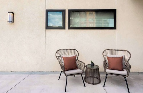 the tesoro lives up to its name as this property is truly a treasure Each level features an earth tone accent color that brings personality to each unit. Neutral, clean line furnishings anchor each room. Thoughtfully curated modern, minimalist art brings each space to life while creating a tranquil environment. A refined selection of organic décor creates a soothing sanctuary-like setting in the heart of Denver. Still, swank city energy and innovation resonate from the stone waterfall countertops and top-of-the-line stainless steel appliances and laundry set.