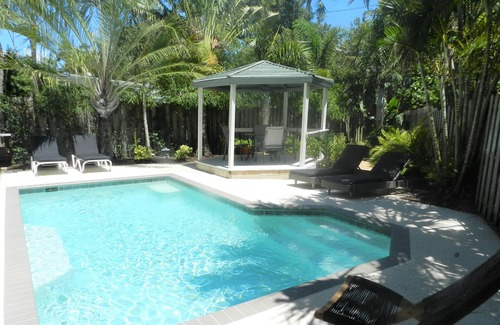 featuring a spacious sun filled great room with 18ft ceiling overlooking the heated pool with tropical garden and gazebo for outdoor dining, this house provides the perfect vacation setting for both adults and families Whether swimming, sun bathing or just relaxing with a cup of coffee or a glass of wine, this space provides an ideal setting to create vacation memories.