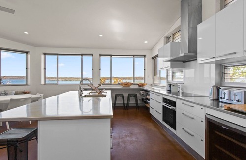 this property is designed for entertaining in the well equipped kitchen and the light filled dining living area Panoramic windows in the open plan kitchen and living area provide the ideal atmosphere to enjoy relaxing and while enjoying sweeping bay views.