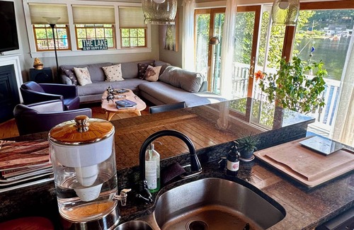 this lake home is tastefully designed with an adult-oriented decor, and has not been childproofed, presenting safety concerns for young children due to features like open water access, stairs and high deck/docks The property is best suited for Adult guests to ensure everyone's safety and enjoyment. Due to the these safety concerns the property may not be suitable for the safety of young children ( 0-14 years of age). To ensure a safe and worry-free experience. We advise considering these factors when planning your stay. this home is available for 30 day stays just inquire!