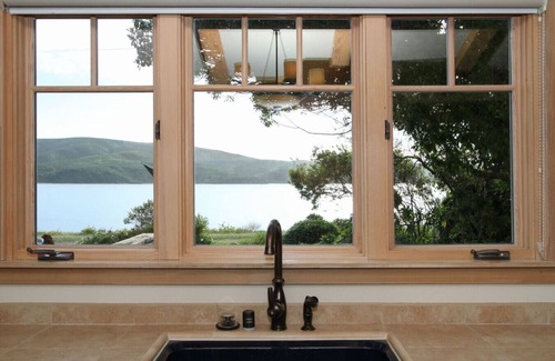the custom designed lodge home has aged cedar timbers vaulting all ceilings; decks, panoramic windows capture western seashore, bay views, and magical sunsets Barracca is a great private get away spot for a family, intimate reunions of friends, or couples seeking a very private romantic country retreat.