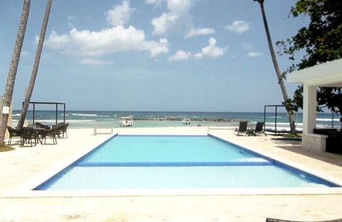 Wow! You will truly feel at home in our beach-side apartment! Swim in our infinity pool or the protected private beach steps from the pool deck. Enjoy the tranquility that a smaller family-oriented building can afford. Take in the spectacular view from sunrise to sunset on our balcony. Each of the three bedrooms has its own private bath with plenty of closet space. Take advantage of our fully-equipped kitchen, or barbecue poolside. Don't feel like cooking? Juan Dolio has plenty of restaurant choices, many of which deliver! Additional Cleaning and cooking services, as well as on-site laundry is available!.