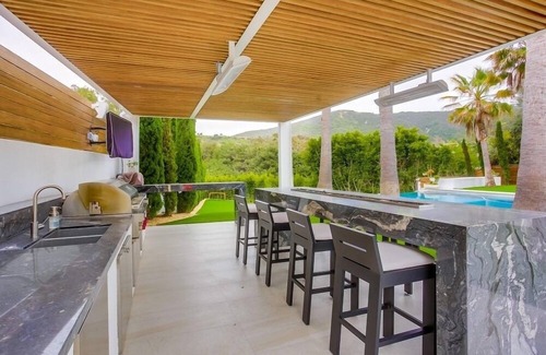entertainment options abound in this luxurious haven Retreat to the state-of-the-art TV room for a cozy movie night, or venture outside to the two exquisite outdoor entertainment areas. Grill your favorite delicacies on the BBQ, chill beverages in the ice maker and fridge, and immerse yourself in the surround sound system that resonates throughout the entire property.