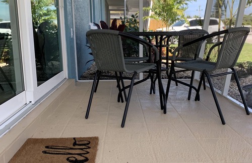The White Pelican Cottage is your nest at this boutique resort on beautiful Manasota Key!! Part of the Shorebirds Beach Cottages property, a newly renovated property located just a 3 minute walk from the beautiful Gulf waters and shell strewn beach. A thoughtfully appointed kitchen, dining table, living room with queen-sized sleeper sofa, one king bedroom, and one queen bedroom are among the comforts offered for your carefree vacation. Enjoy your morning coffee or evening cocktail on your private screened porch or hang out in our lush tropical backyard garden. in the evening, take a stroll to awe at the most dramatic sunsets, found only on this side of the gulf!