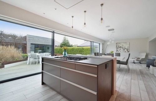 this room is the heart of the home and opens up to the garden with enormous glass doors The kicthen is packed full of the latest gadgets with a full size oven/grill/mircrowave/nesprosso/dishwasher and hob.