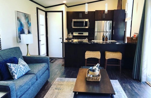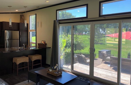 Everything provided, cottage is situated in a private resort on the 16th green of a premier public golf course. 1 bedroom and easily sleeps 4, including a sofa bed. Beautiful backyard includes patio with furniture, outdoor dinning, bbq & fire pit. Easy access to boat launch & wells, outdoor pool & playground. Minutes walk to Parkside Grille 5 star restaurant with lounge and live music. Enjoy scenic ecosystem of river & lake access to boat, fish, paddle on Lake St.Clair. Sandy beach nearby!.