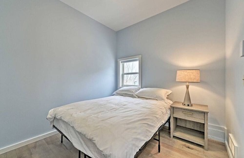 after experiencing world-class mountain biking, climbing, or hiking, return to this completely remodeled house and wind down in nearly 1,000 square feet of fresh, inviting living space Warm your toes by the gas stove as you lounge in the living room, which features bright blue welcoming walls, picture windows overlooking the mountains, and a Roku TV.