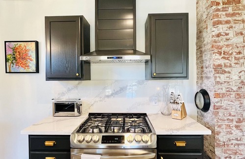 Welcome to our Wine Country Gem in downtown McMinnville!! This vintage 1930s bungalow was renovated in 2023 from top to bottom to preserve its charming character with modern upgrades and amenities. Everything in the bungalow is brand new! The open concept floorplan is perfect for entertaining with two sets of French doors leading out to a spacious, all season covered porch that is a stones throw away from Flag & Wire Coffee Roasters, the Grain Station Brewery and Restaurant, Alpine Crossing and Kitchen, Eyrie Vineyards, Mac Market and so much more. The spacious living room features gorgeous art from the Erin Hanson gallery, a large sofa, loveseat and accent chair and a fabulous fireplace. The beautiful designer kitchen is fully equipped with high end appliances, including a gas stove and oven, luxurious Quartz countertops and a farmhouse sink. The 2 bedroom, 1 1/2 bath bungalow also features designer tile and lighting, shiplap accent walls, luxury wood plank flooring, and central heating and air conditioning. when you stay at our wine country gem, you don't have to compromise on style, charm, location or convenience!!!