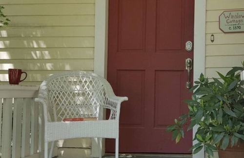 NO CLEANING FEE, FULL HOUSEKEEPING, COMPLIMENTARY BREAKFAST , PET FRIENDLY – Winslow Cottage has curbside parking, keyless self-entry. Whole house has living room with gas log fireplace, king bedroom, large Soaking Tub for 2 with shower, well-furnished kitchenette, Keurig coffeemaker with all supplies, RoKu TV with premium channels, free WiFi, robes, hair dryer, iron-ironing board, French milled soap & shampoo. Located 5 blocks from restaurants, shops & entertainment.