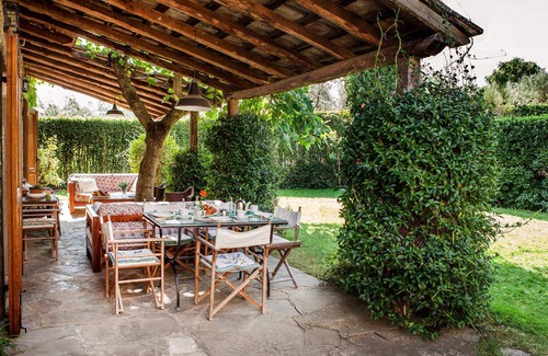 the garden of the villa is always perfectly kept and features plenty of outdoors furniture for the 2 covered verandas as well as for the pool area.. Which makes it perfect for relaxing, and enjoying the views with a glass of wine or for al fresco dining (a vintage barbecue is available).