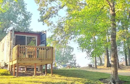 Explore the Land Between the Lakes Recreation Area and stay in this charming shipping container turned tiny home. With all the comforts of home, it comes fully equipped with a kitchenette which boasts a 4-in-1 microwave, air fryer, convection and toaster oven. Our land is being renovated to host several tiny home stays, so pardon our dust. We live on the property along with our chickens, ducks, dogs and cats.