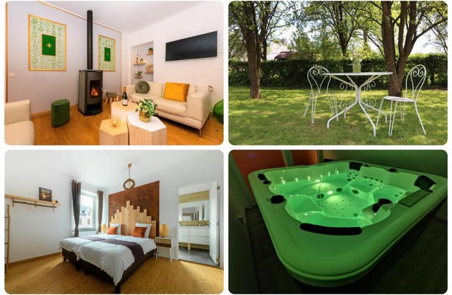 BathroomAdditional bathroom, Hairdryer, Body soap, Toilet paper, Toilet, Spa tub, Shampoo, Walk-in shower, Bathtub or shower, Shower, Free toiletries, Private bathroomMedia & TechnologyTV, Flat-screen TV, Streaming service (like Netflix), Pay-per-view channels, Satellite channels, Radio, VideoActivitiesHot tubGeneralIron, Heating, Ironing facilities, Hardwood or parquet floors, Fire extinguisher, Private entrance, Tile/Marble floor, Trash cans, Smoke Alarm, HypoallergenicKitchenHigh chair, Microwave, Stovetop, Refrigerator, Washing machine, Dryer, Toaster, Dishwasher, Cleaning products, Coffee machine, Kitchen, Dining table, Wine glasses, Oven, KitchenwareLiving AreaSofa, Sitting area, Fireplace, Dining areaBedroomChildrens' cribs, Wardrobe or closet, Walk-in closetOutdoorsBarbecue, Outdoor dining area, Outdoor furnitureViewInner courtyard view, Quiet street view, City viewAccessibilityEntire unit located on ground floor, Upper floors accessible by stairs onlyBuilding CharacteristicsPrivate apartment in building, DetachedEntertainment & Family ServicesBooks, DVDs or music for childrenRoom AmenitiesHypoallergenic pillow, Non-feather pillow, Socket near the bed |